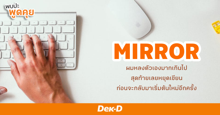 ถึงแม้ “MIRROR” จะไม่ได้เริ่มต้นเขียนนิยายจากความขัดใจในเนื้อหานิยาย แต่เขาก็เริ่มต้นเขียนนิยายจากความคิดง่ายๆ ว่ามันน่าสนุกดี แล้วก็เริ่มต้นลงมือเขียนจากศูนย์ ไม่มีความรู้เรื่องการเขียนนิยายเลยแม้แต่น้อย เขียนมาเรื่อยๆ จนมีนักอ่านติดตามผลงานไม่น้อย แต่แล้ววันหนึ่ง “MIRROR” ก็เจออุปสรรคที่ทำให้เขาถึงกับหยุดเขียนนิยายไปพักใหญ่ก่อนจะกลับมาเขียนอีกครั้ง อะไรจะเป็นสาเหตุของเหตุการณ์ที่ว่า วันนี้เรามาติดตามเรื่องราวของ “MIRROR” ในบทสัมภาษณ์นี้กันค่ะ