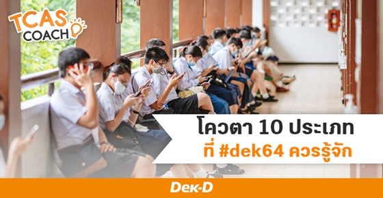 นี่ก็เป็นตัวอย่างโควตา 10 ประเภทที่อยากให้น้องๆ #dek64 ได้รู้จักไปพร้อมๆ กับการสำรวจตัวเองว่าเราพอจะมีคุณภาพเข้ากับโควตาไหนบ้างหรือเปล่า และนอกจาก 10 โควตาที่ว่ามานี้ ก็ยังมีโควตาอื่นๆ อีกนะคะ แต่ก็จะแตกต่างไปตามมหาวิทยาลัยค่ะ เช่น บางที่หากน้องๆ ไปเข้าค่ายกับมหาวิทยาลัยก็สามารถใช้ยื่นสมัครได้ หรือ โครงการเรียนล่วงหน้าของ ม.เกษตรฯ หากมีการสมัครและสอบผ่าน ก็สามารถยื่นเข้ารอบโควตาของ ม.เกษตรฯ ได้เช่นกันค่ะ รู้แบบนี้แล้ว หลังจากนี้ก็อย่าชะล่าใจ มีข่าวอะไรใหม่ๆ มาให้รีบอ่าน เผื่อมีโอกาสดีๆ รออยู่ตรงหน้านะคะ