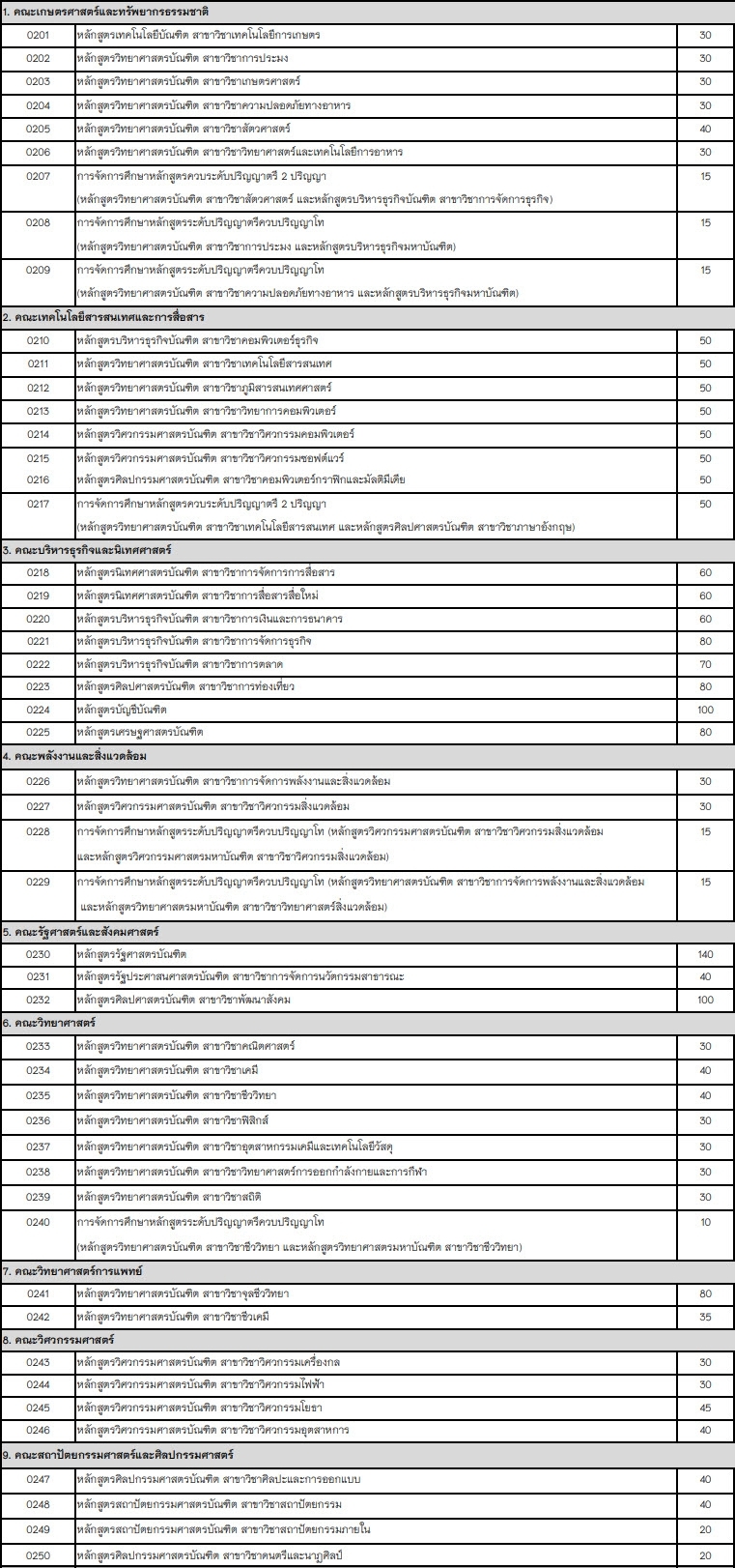 ยืนยันสิทธิ์ในระบบ TCAS : 22 - 23 กุมภาพันธ์ 2564โควตาคณะ (2,215 ที่นั่ง)