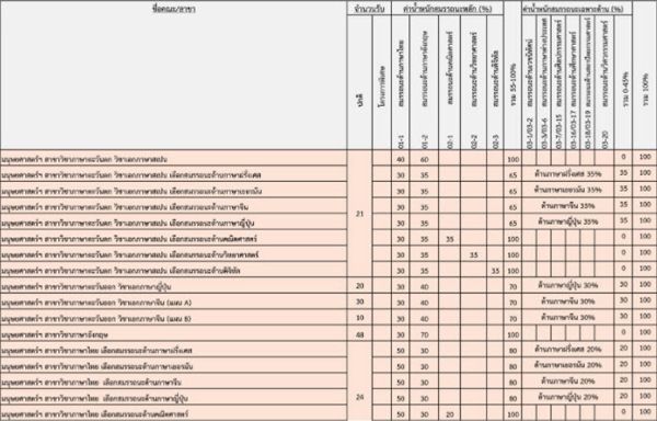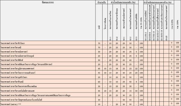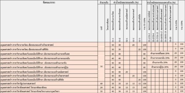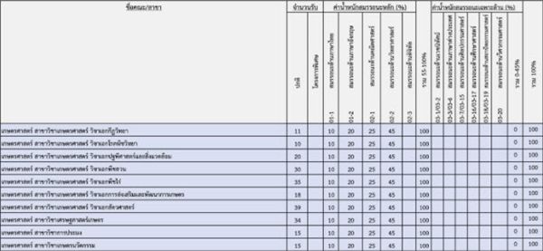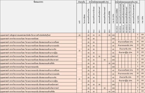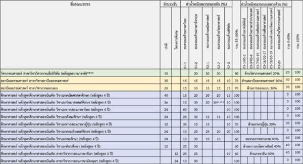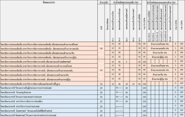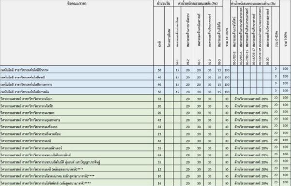 เกณฑ์คะแนนวิชาสมรรถนะ คณะต่างๆ