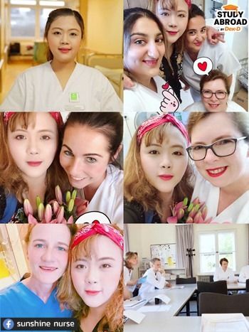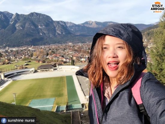 "แต่เรามาเจอโอกาสทำงานที่เยอรมนีก่อนเพราะประเทศเขาขาดแคลนพยาบาลมาก สิ่งที่ต้องใช้มีแค่วุฒิพยาบาลที่จบมา + ประสบการณ์ 2 ปี + ภาษาเยอรมันระดับ B2 (อ่านต่อเกี่ยวกับภาษาเยอรมัน B2) ถ้าภาษาได้เราสามารถยื่นเองได้โดยไม่ต้องผ่านเอเยนซี่เลย แต่ต้องตอบตัวเองให้ได้ว่าชอบจริงๆ มั้ย เพราะการเรียนภาษาเยอรมันต้องใช้ความอดทนสูง แกรมมาร์มันยากจริงๆ ตอนนั้นพี่ไปลงคอร์ส Intensive ของ Goethe-Institut ในไทย เริ่มต้นนับหนึ่งจนถึงระดับ B2 เลย นอกคลาสก็เข้าห้องสมุดบ่อยๆ เอาหนังภาษาเยอรมันมาเปิดดู (มีซับไตเติลเยอรมันยิ่งดี) พยายามทำให้ชีวิตเจอแต่ภาษานี้ มันเป็นวิธีที่เวิร์กมาก ช่วงสั้นๆ ก็ทำสำเร็จได้แต่ต้องจริงจังมาก"