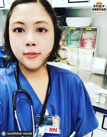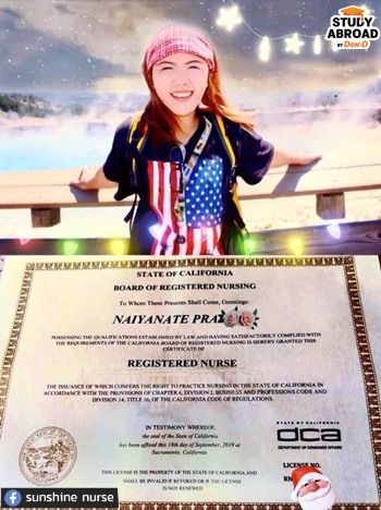 "เรียนมาจนเทอมสุดท้ายก็ขอที่บ้านไป Work & Travel ที่อเมริกา เพราะอยากเห็นการทำงานที่ต่างประเทศ ปรากฏว่าได้ฝึกภาษาเต็มๆ แล้วยังชอบอเมริกากว่าเดิมไปอีกค่ะ 5555 หลังกลับไทยมาทำงานเป็นพยาบาลห้องฉุกเฉินก่อน 2 ปี แล้วนั่งหาข้อมูลว่าจะไปเป็นพยาบาลที่อเมริกาต้องทำอะไรบ้าง"