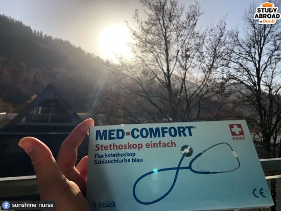 "อย่างเช่นสัปดาห์ก่อนเรามีขึ้นเวรแล้วเจอเพื่อนเยอรมันกำลังคีย์ข้อมูลลงคอมพ์ฯ แล้วไม่รู้ว่า Antidepressiv คือยาอะไร เราเลยช่วยอธิบายให้เพื่อนฟังเป็นภาษาเยอรมัน รู้สึกคอมพลีทสุดๆ เลยค่ะ 5555 แล้วหัวหน้าพยาบาลก็เพิ่งจะให้ Stepthoscope เป็นของขวัญด้วย ส่วนคนไข้ก็น่ารัก บางทีกำลังใจก็มาจากพวกเขา เวลาเขาชมว่าพยาบาลไทยดูแลดีจัง เรานี่ใจฟูเลยย TT ภูมิใจมากที่มาถึงจุดนี้ ชีวิตคือการผจญภัยจริงๆ แหละ"