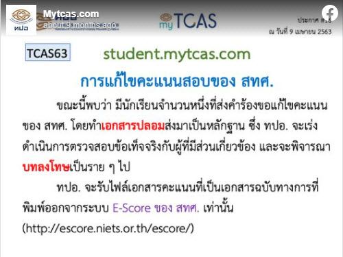 ทปอ.พบนักเรียนใช้หลักฐานปลอมขอแก้ไขคะแนนใน myTCAS