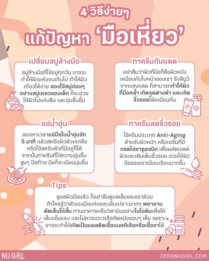 ข้อมูลอ้างอิงจาก : https://www.realsimple.com/beauty-fashion/skincare/anti-aging/how-to-make-hands-look-younger