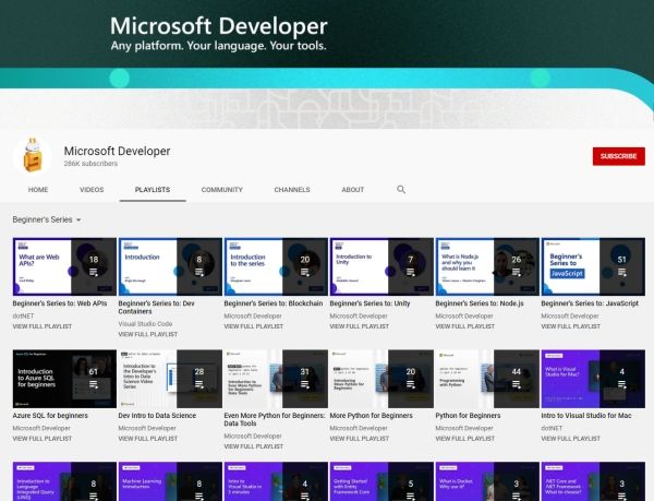 ปิดท้ายด้วยหลากหลายคอร์สจากบริษัทเจ้าของโปรแกรมใกล้ตัวเรากันค่ะ ซึ่งงานนี้เค้าจัดเต็มให้แน่น YouTube Channel Microsoft Developer จัดแบ่งหัวข้อเป็น Playlist ให้เข้าไปเรียนได้ตลอดเวลา เช่น