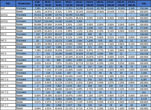 สำหรับช่วงคะแนนสอบที่ทางสทศ.ประกาศออกมา จะทำให้ได้รู้ข้อมูลว่า แต่ละวิชามีผู้เข้าสอบจำนวนเท่าไหร่ กลุ่มคนส่วนใหญ่ได้คะแนนเท่าไหร่ มีคนที่ได้คะแนนมาก-น้อยประมาณเท่าไหร่ โดยข้อมูลเหล่านี้จะช่วยให้คาดคะเนได้ว่าแนวโน้มคะแนนได้นั่นเอง