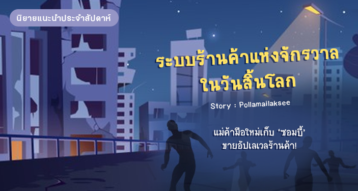นิยายเรื่อง ‘ระบบร้านค้าแห่งจักรวาลในวันสิ้นโลก’ เป็นนิยายแฟนตาซีแนวระบบเซ็ตติ้งไทยที่เปิดเรื่องมาได้น่าสนใจมากๆ ตัวเอกของเรื่องเป็นหญิงสาวที่ชื่อว่า ‘แคนดี้’ เธอคือมนุษย์ที่รอดตายจากซอมบี้ได้อย่างปาฏิหาริย์ หลังจากที่เธอหลบหนีเข้าไปอยู่ในห้างได้สำเร็จ ระบบ(จากไหนไม่รู้)ก็ได้แจ้งให้เธอรู้ว่าตอนนี้ได้ติดตั้ง ‘ระบบร้านค้าแห่งจักรวาล’ สำเร็จแล้ว แถมยังมีสินค้าพร้อมขายอยู่แล้วถึง 3 ชิ้น!