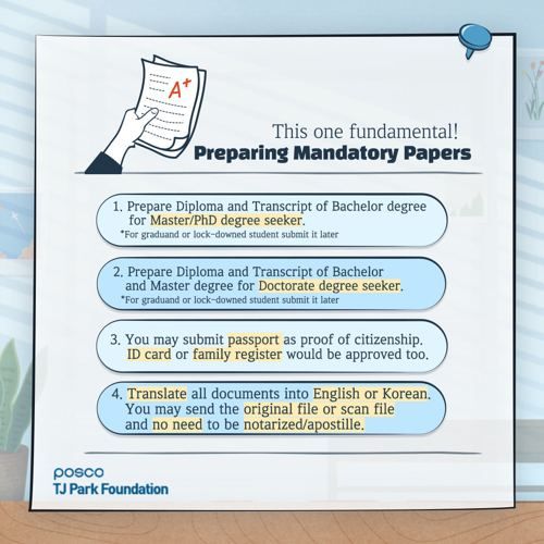 - เหมาะกับผู้สมัครที่หาทุนเรียนต่อระดับบัณฑิตวิทยาลัย ที่ประเทศเกาหลีใต้ ในภาคการศึกษาฤดูใบไม้ผลิปี 2022 หรือภาคเรียนฤดูใบไม้ร่วงปี 2022