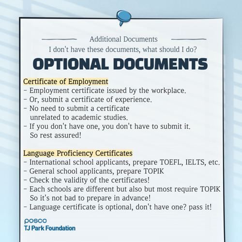 - ใบรับรองคะแนนภาษา (อังกฤษ/TOPIK) **ถ้ามี