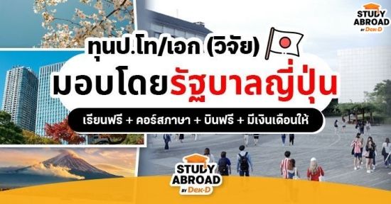 สวัสดีค่ะชาว Dek-D ใครสนใจอยากเรียนต่อใน 'ประเทศญี่ปุ่น' ที่เรียนกันแบบเข้มข้นมาก บ้านเมืองทันสมัย และขึ้นชื่อเรื่องความเป็นระเบียบวินัย ข่าวดีคือตอนนี้ทุนการศึกษาจากรัฐบาลญี่ปุ่น ปีการศึกษา 2565 (Japanese Government (MEXT) Scholarship 2022) หรือที่เรียกกันว่า 'ทุนมง' กำลังเปิดรับสมัคร ต้องส่งเอกสารภายในวันศุกร์ที่ 4 มิ.ย.64 เวลา 15.00 น. // ใครอยู่ #ทีมญี่ปุ่น เตรียมตัวให้ดี เพราะทุนนี้ให้ค่าเล่าเรียนเต็มจำนวนจนจบหลักสูตร + ค่าใช้จ่ายส่วนตัว + ค่าตั๋วเครื่องบินไปกลับญี่ปุ่น