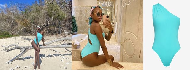 เลือกอวดหุ่นแสนเพอร์เฟกต์ในชุดว่ายน้ำเปิดไหล่ข้างเดียว ของ AB. Angelys Balek คอลเลกชั่น Spring Summer 2020 สีฟ้าน้ำทะเล (Scuba Blue) ตัดกับผิวเนียนสีน้ำผึ้ง ในทริปพักผ่อนที่ Buck Island Reef National Monument (อนุสรณ์สถานแห่งชาติแนวปะการังบั๊กไอส์แลนด์) ในหมู่เกาะเวอร์จินของสหรัฐอเมริกา พร้อมกับโพสต์คลิปวิดีโอการมิกซ์แอนด์แมทช์เสื้อผ้าในสไตล์สาวมาเรียในอินสตาแกรมส่วนตัว @iammariaborges