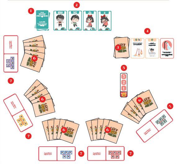 บอร์ดเกมนี้เน้นความสดใสน่ารัก เพราะออกแบบมาเป็นการ์ตูนและตัวอักษรที่อ่านง่าย นอกจากนี้ยังมี 2 ภาษา คือ ภาษาไทย และ ภาษาเมียนมาร์ เพื่อให้เด็กพลัดถิ่นในชุมชน สามารถได้ความรู้ได้เช่นกัน