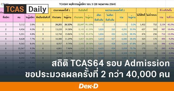 สถิติการคัดเลือก TCAS64 รอบ Admission