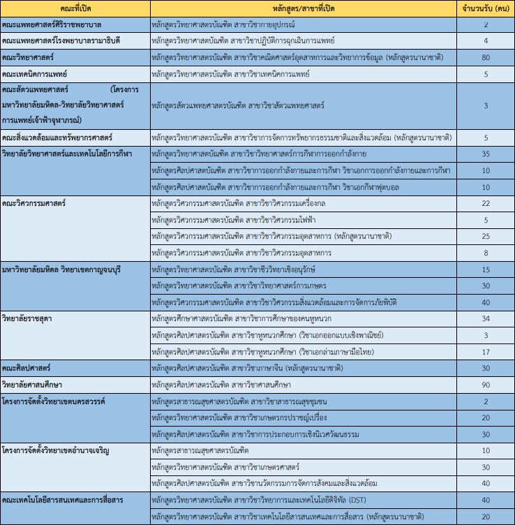 สาขาวิชาที่เปิดรับ