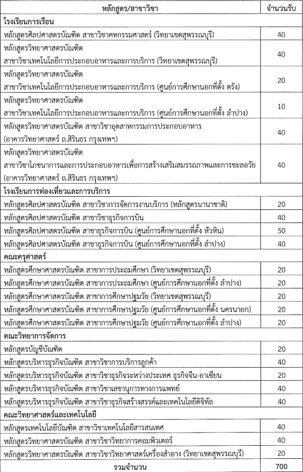 สวัสดีค่ะน้องๆ ขณะที่หลายๆ มหาวิทยาลัยปิดรับสมัครไปแล้ว แต่ก็ยังมีบางมหาวิทยาลัยที่กำลังเปิดรับสมัครอยู่ อย่างมหาวิทยาลัยสวนดุสิต ที่จะเปิดรับสมัครถึงวันที่ 11 มิถุนายนนี้ รวมกว่า 700 ที่นั่ง ไปดูกันว่ามีสาขาวิชาอะไรบ้าง