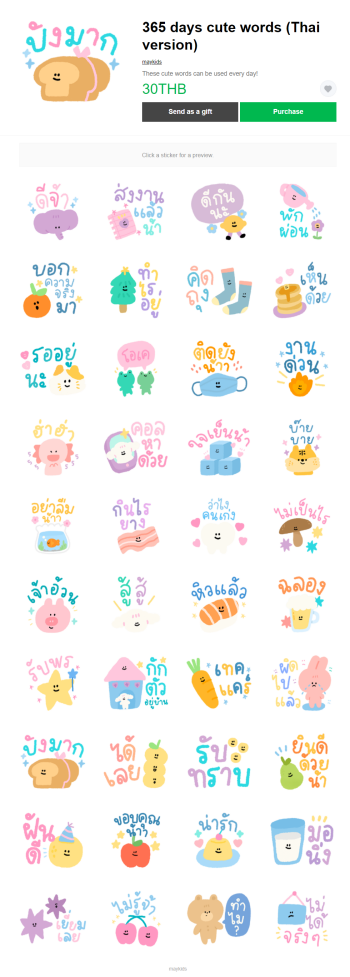 สุดท้ายนี้ขอแอบช่วยขายแบบที่เจ้าตัวไม่ร้องขอหน่อย เพราะน้อนน่ารักจนใจเจ็บบบ! สติกเกอร์ 365 days cute words (Thai version) จาก maykids_studio ไปโหลดกัน :) จิ้มลิงก์นี้ https://bit.ly/3uXD4Uw หรือเสิร์ชหา maykids ใน Line Store ได้เลยนะคะ