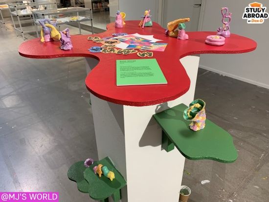 ป.โทที่นี่มี 4 โปรแกรมคือ CRAFT! / Design / Fine Art / Visual Communication สมมติคณะ CRAFT! จะเป็นพวกทำเหล็ก, ไม้, เป่าแก้ว ฯลฯ ม.จะมีห้อง workshop แยกออกมา มีอุปกรณ์ให้พร้อมตัดไม้ หรืออย่างคณะเราจะเน้นงานพิมพ์ ในคณะจะมี printer แบบต่างๆ ห้องทำแอนิเมชันเล็กๆ ห้องภาพพิมพ์ ฯลฯ เด็กคณะอื่นก็ใช้ได้หมดแต่อาจต้องติดต่อทำเรื่องขอคณะนั้นก่อน การเรียนที่นี่เลยมีโอกาสสร้างผลงานเยอะมาก อยากทำงานแบบไหนก็มีห้องกับเครื่องมือรองรับ เวลามีเพื่อนจาก ม.อาร์ตอื่นๆ มาหาเราเค้าค่อนข้างว้าวกับความครบของที่นี่