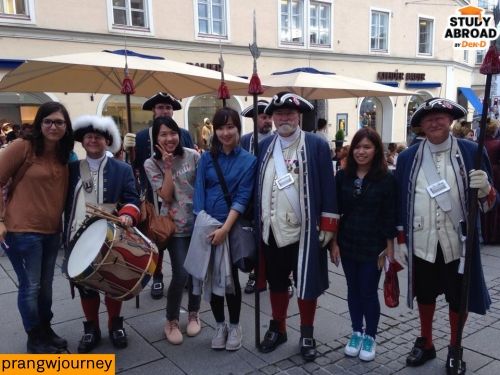 และมีครั้งที่ mentor ผู้หญิงคนนึงอาสาพาเรากับเพื่อนอิตาลีอีก 2 คนที่มีเมนเทอร์คนเดียวกัน ไปเที่ยวบ้านและเยี่ยมครอบครัวของเขาที่ชนบท มีเอาชุด traditional ให้ใส่เพื่อไปเทศกาลเบียร์ที่ชื่อ ‘October Festival’ เต็นท์นึงจะนั่งอัดกัน (จริงๆ คือเบียร์ที่นั่นถูกกว่าน้ำเปล่าที่ขายอีกค่ะ แต่คนที่นั่นสามารถดื่มน้ำจากก๊อกได้นะ ทั้งฟรีและสะอาด) จากนั้นเค้าก็ยังพาขึ้นเขาไปร้านอาหาร open air บนนั้นอีก