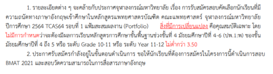 - โดยคะแนน BMAT ปีนี้จะเปิดสอบรอบเดือนพฤศจิกายนเท่านั้น