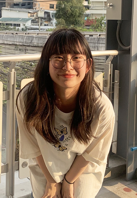 ตั้งแต่เด็ก ๆ เราก็เป็นคนที่เติบโตมากับสื่อค่ะ ชอบดูการ์ตูน หนัง คอนเสิร์ต ทีวี คุณพ่อคุณแม่ก็ทำงานและเรียนด้านนี้ด้วย เลยได้ซึมซับมา จนถึงตอนนี้ก็ชอบทำกิจกรรม ชอบทำเบื้องหลัง ชื่นชอบทางด้านอุตสาหกรรมบันเทิง เพราะเป็นสิ่งที่น่าสนใจ รู้สึกว่าด้านเหมาะกับตัวเองที่สุด เลยทำให้อยากเรียนในด้านนี้ค่ะ