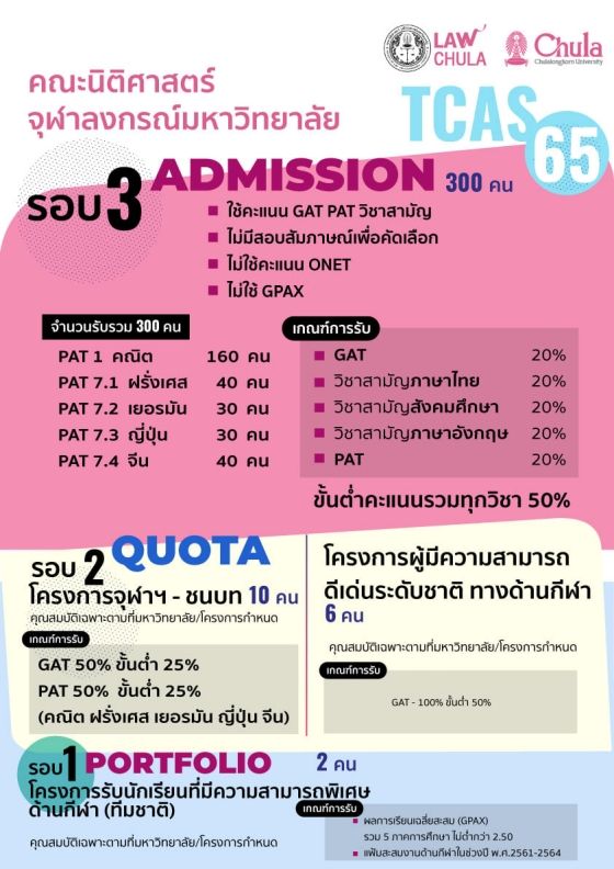 TCAS65 คณะนิติศาสตร์และรัฐศาสตร์ จุฬาฯ