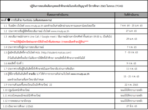 TCAS65 รอบ 1 Portfolio ม.เทคโนโลยีราชมงคลพระนคร