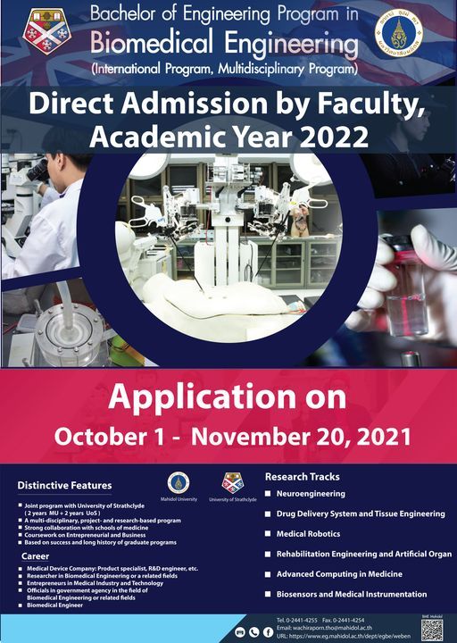 Bachelor of Engineering Program in Biomedical Engineering (International Program) Academic Year 2022