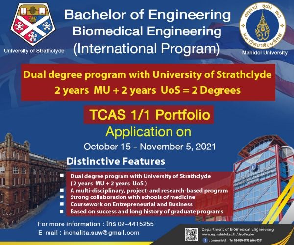 Official announcement: https://www.eg.mahidol.ac.th/egmu/all-tcas/3171-tcas-65-direct-admission-1-bme-che.html?fbclid=IwAR1I6funKh1RvDcRHJl9nByavmKMa4975M9xL64VPykIVQVIfsncibKkU7I