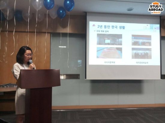 พี่เลือกเรียนด้านการสอนภาษาเกาหลีในฐานะภาษาต่างประเทศเพราะต้องการนำมาปรับใช้กับงานสอนในปัจจุบัน ถึงเอกนี้จะเป็นส่วนหนึ่งของ The Graduate School of International Studies แต่จะมีทั้งรายวิชาที่สอนเป็นภาษาอังกฤษ และวิชาคณะส่วนใหญ่ใช้ภาษาเกาหลีเป็นหลัก รวมถึงการวิจัยที่ต้องทำเป็นภาษาเกาหลีด้วยค่ะ