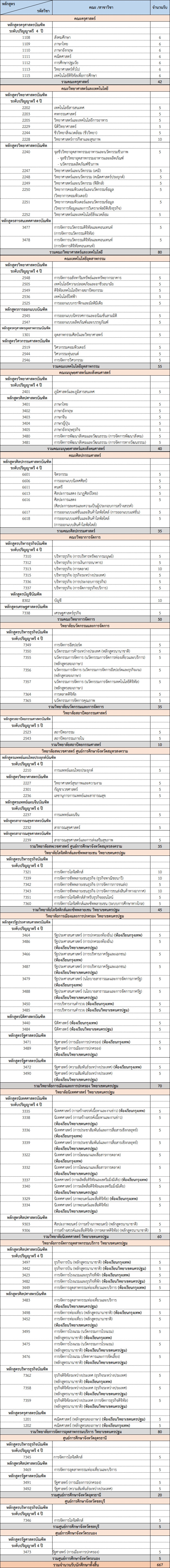 สาขาวิชาที่เปิดรับ (126 สาขาวิชา)
