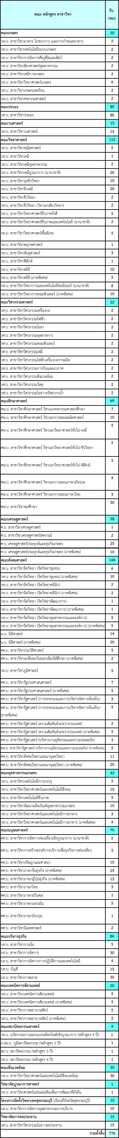 - สาขาวิชาวิทยาศาสตร์เกษตร 40 ที่นั่ง