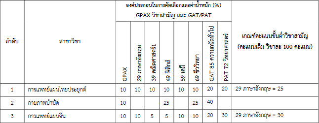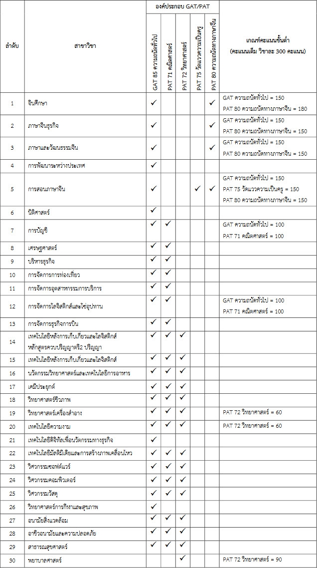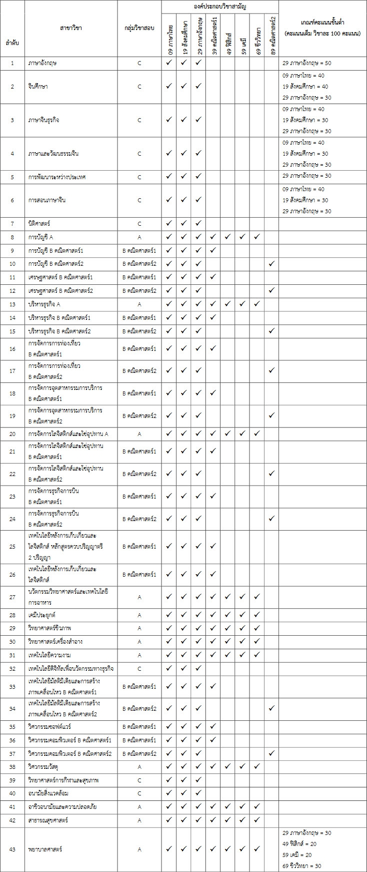 ผู้สมัครจะต้องมีคะแนนครบทุกรายวิชาตามที่กำหนดไว้