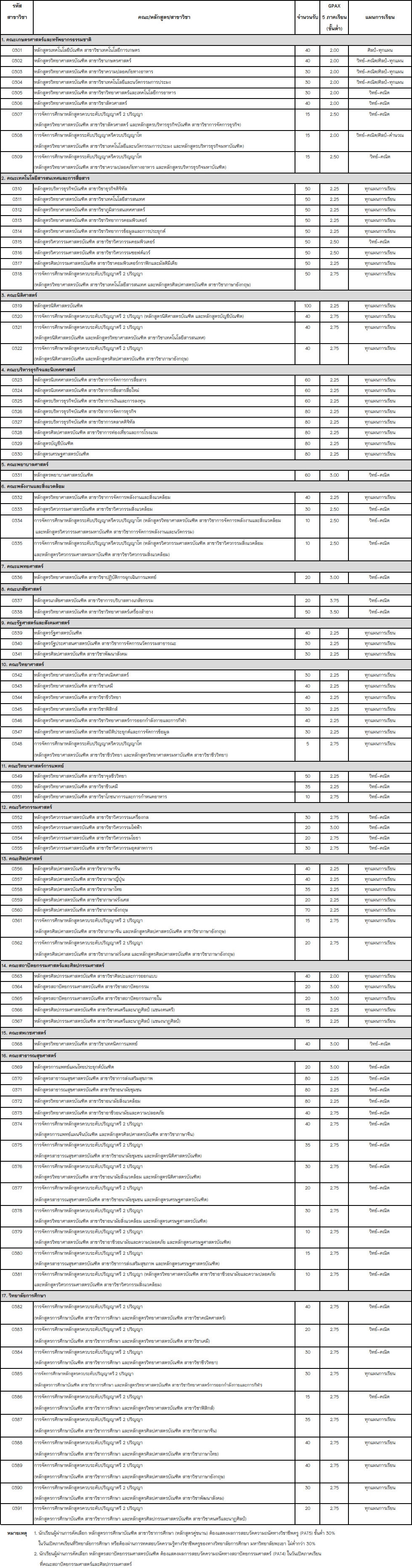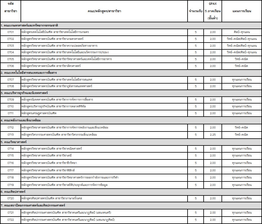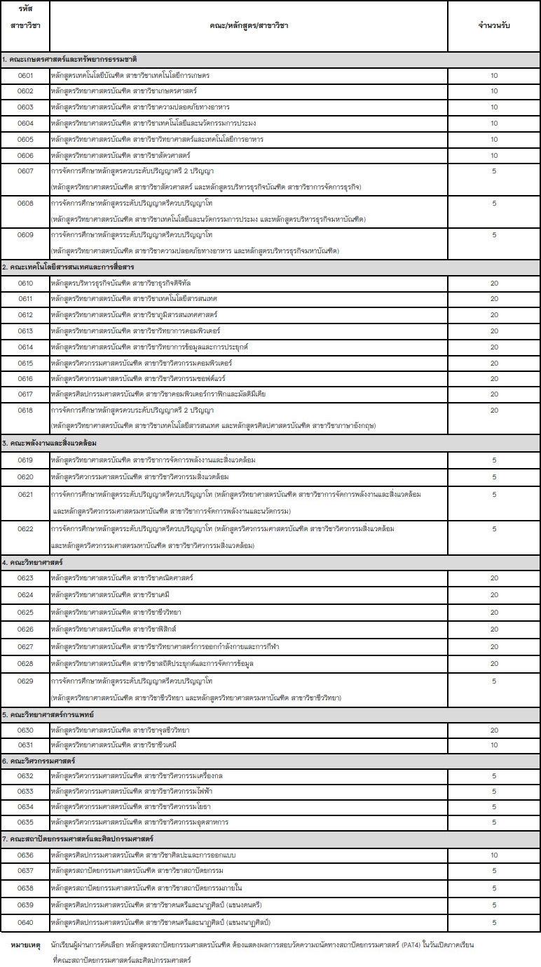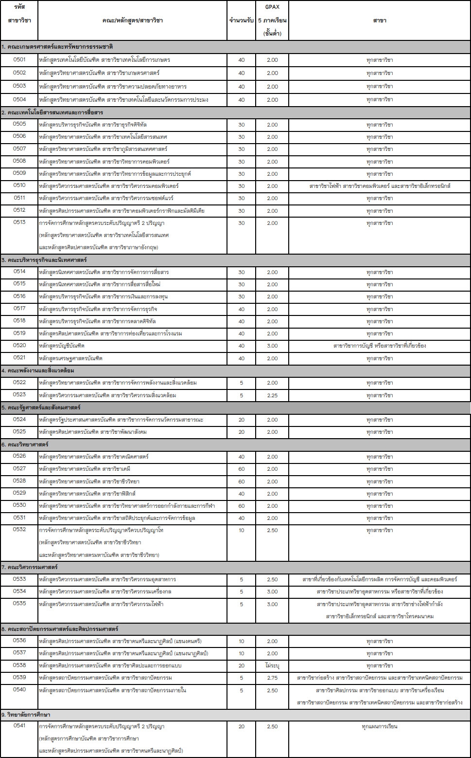 สาขาวิชาที่เปิดรับ