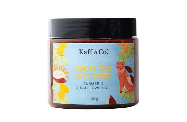พร้อมกันนี้ Kaff & Co. ยังเปิดตัว Winter Time Sugar Body Scrub สครับน้ำตาลขัดผิวกาย ส่วนผสมจากขมิ้นและน้ำมันดอกคำฝอยสูตรพิเศษ ด้วยส่วนผสมจากน้ำตาลช่วยผลัดเซลล์ผิวที่ตายแล้วออกด้วยสัมผัสที่นุ่มนวล มีกรดไกลโคลิค ช่วยผลัดเซลล์ผิวเก่าอย่างอ่อนโยน ทั้งยังละลายได้ดีเมื่อลูบไล้ ส่วนขมิ้นชัน มีสารสำคัญในกลุ่มที่เป็นสารออกฤทธิ์ต้านอนุมูลอิสระ เช่น สารเคอร์คูมินอยด์ (Curcuminoid) และน้ำมันหอมระเหยโมโนเทอร์ปีน ที่มีฤทธิ์ต้านอนุมูลอิสระได้ดี อุดมไปด้วยเกลือแร่และวิตามิน ช่วยบำรุงผิวพรณให้ผ่องใสขึ้น อีกทั้งยังมีน้ำมันดอกคำฝอยที่อุดมไปด้วยกรดไขมันชนิดไม่อิ่มตัว ได้แก่ กรดไลโนเลอิก (Linoleic Acid) บรรเทาอาการอักเสบของผิวหนัง มีวิตามินอี ช่วยเติมความชุ่มชื้นให้ผิวที่แห้งกร้าน พร้อมด้วยคุณสมบัติในการฆ่าเชื้อจากน้ำมันมะพร้าว และที่ขาดไม่ได้คือน้ำผึ้งซึ่งเป็นสารให้ความชุ่มชื้นตามธรรมชาติ ทำให้ผิวหนังมีความอ่อนนุ่ม และยืดหยุ่น มีประสิทธิภาพในการเป็นสารต้านอนุมูลอิสระธรรมชาติที่มีบทบาทในการปกป้องผิวหนังจากการทำลายของแสงยูวี และช่วยในการเสริมสร้างเซลล์ผิวหนังใหม่ รวมทั้งช่วยฟื้นฟูและช่วยสมานผิว ผสานกับคุณค่าของน้ำมันรำข้าวที่มีสารสำคัญหลายชนิด ช่วยต้านอนุมูลอิสระได้ดีกว่าวิตามินอีทั่วไป ช่วยให้ผิวเปล่งปลั่ง เพิ่มความแข็งแรง ลดเลือนจุดด่างดำให้กระจ่างขึ้น นุ่มและชุ่มชื่นอย่างเป็นธรรมชาติ โดยผลิตภัณฑ์ Winter Time Sugar Body Scrub นี้ สร้างสรรค์มาเพื่อจำหน่ายเฉพาะช่วงเทศกาลของขวัญ ตั้งแต่วันนี้ถึง 22 กุมภาพันธ์ 2565 นี้เท่านั้น
