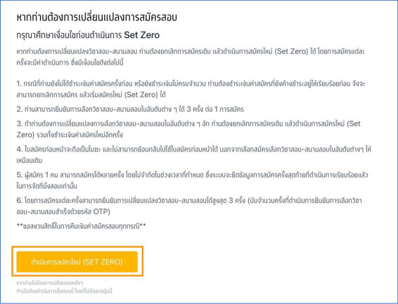 การ Set Zero นอกจากจะไม่สามารถขอคืนค่าสมัครเดิมคืนได้แล้ว น้องๆ ยังต้องเสียค่าสมัครของการสมัครรอบใหม่อีก ดังนั้นอยากให้น้องๆ วางแผนการสมัคร และตัดสินใจให้รอบคอบก่อนยืนยันการสมัครแต่ละครั้ง