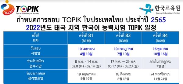สามารถติดตามรายละเอียดการสอบได้ที่เว็บนี้นะครับ https://www.topik.go.kr/TWINFO/TWINFO0011.do?bbsId=BBSMSTR00076&nttId=104227&nttClCode1=ALL&pageIndex=1&searchType=&searchWord=