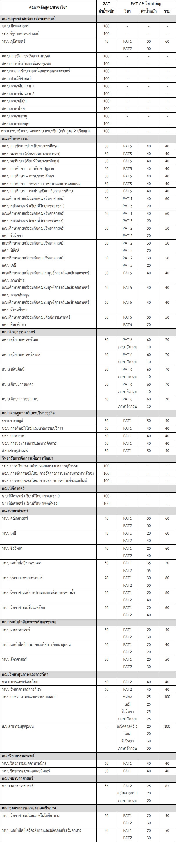 สาขาวิชาที่เปิดรับ + เกณฑ์คัดเลือก