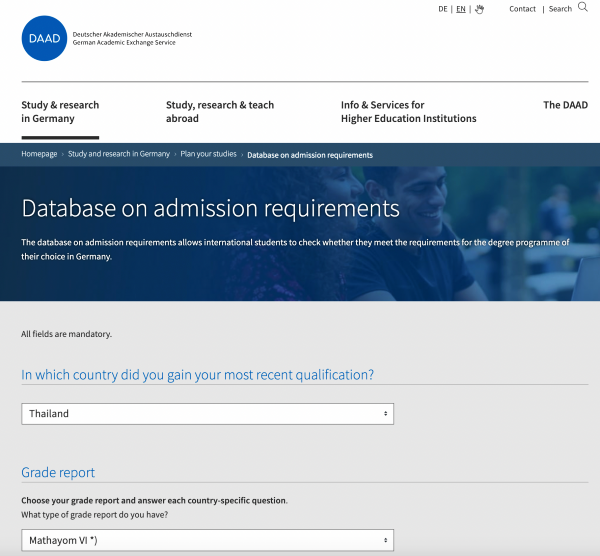 เราต้องเข้าไปสมัครเรียนออนไลน์ผ่านเว็บ https://www.uni-assist.de/en/ เขาจะมีบริการแปลงเกรดจากระบบประเทศเราให้เป็นแบบเยอรมนี มีแค่ไม่กี่แห่งที่ยื่นกับมหาวิทยาลัยได้โดยตรงค่ะ ทั้งนี้ แนะนำว่าให้เข้าไปตรวจสอบก่อนว่าเราผ่านคุณสมบัติในการสมัครเรียนที่มหาวิทยาลัยในเยอรมนีได้มั้ย (ลิงก์นี้)