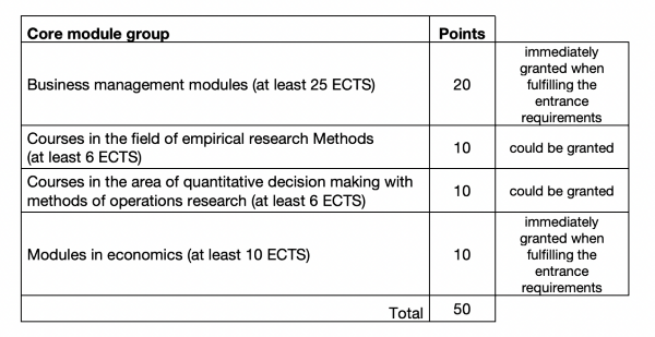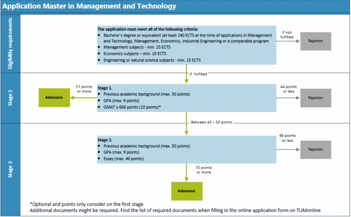 - ต้องเรียนจบ ป.ตรีหรือเทียบเท่า ในหลักสูตรที่เกี่ยวข้อง เช่น การจัดการและเทคโนโลยี, การจัดการ, เศรษฐศาสตร์, วิศวกรรมอุตสาหการ ฯลฯ โดยต้องมีขั้นต่ำ 140 ECTS (*ECTS คือ ระบบหน่วยกิตที่ใช้ในมหาวิทยาลัยยุโรป)