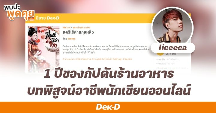 เชื่อว่าคนเราสามารถทำหลายอาชีพไปพร้อมกันได้ “ไอซ์” หรือนักเขียนนามปากกา “Iiceeea” อดีตกัปตันร้านอาหาร เจ้าของนิยายติดท็อปเรื่อง “สตรีไร้ค่าสกุลหลิว” ก็เป็นหนึ่งในคนที่เคยทำงานไปด้วย แต่งนิยายไปด้วย และมีรายได้เสริมจากการขายนิยายออนไลน์ตั้งแต่ 5 วันแรกที่เปิดขายบนเว็บเด็กดี
