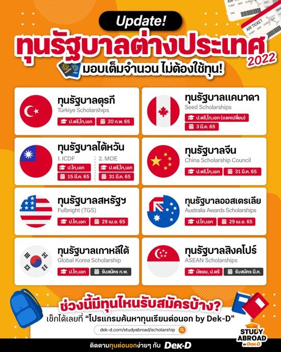 ตามไปเช็กกันต่อได้เลยที่ "โปรแกรมค้นหาทุนเรียนต่อนอก by Dek-D"