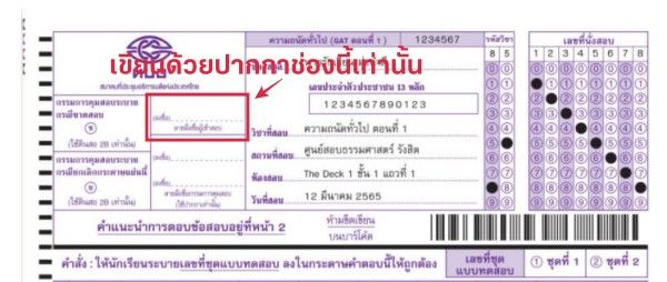 2. ใช้ดินสอฝนคำตอบ แต่เซ็นชื่อใช้ปากกาเท่านั้น