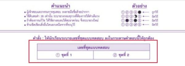 เมื่อน้องๆ ได้รับข้อสอบแล้วมาแล้ว ให้สังเกตที่ข้อสอบของตัวเอง และอย่าลืมฝนรหัสชุดข้อสอบของตัวเองลงในกระดาษคำตอบด้วยนะคะ เพื่อให้ระบบตรวจได้อย่างถูกต้องและแม่นยำ
