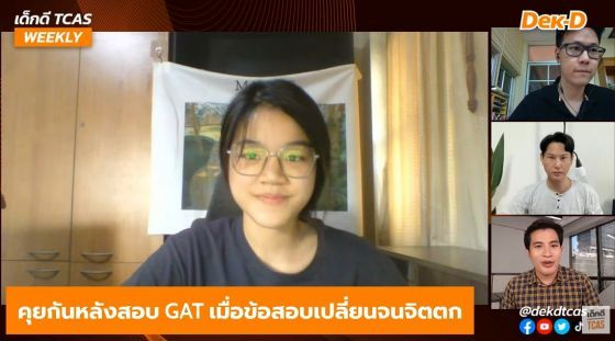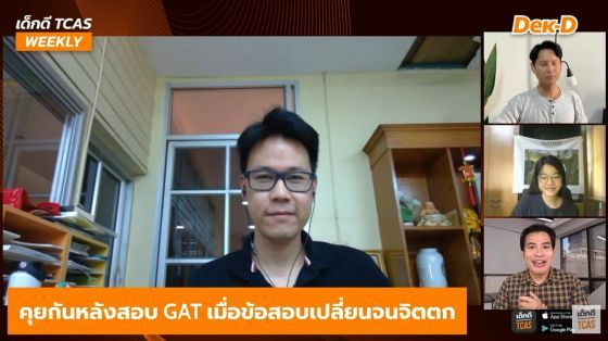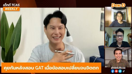 เด็กดี TCAS WEEKLY สัปดาห์นี้จึงได้มาคุยกันหลังสอบในประเด็น GAT เชื่อมโยง และ Eng ปี 65 เมื่อข้อสอบเปลี่ยนจนจิตตก โดยมีแขกรับเชิญจากอาจารย์ขลุ่ย ณภัทร รอดเหตุภัย, ครูพี่ติงลี่ รชต กิตติโกสินท์ และกัปตันพราว จาก Dek-D's TCAS Reality มีประเด็นอะไรน่าสนใจบ้าง ไปดูกันเลยค่ะ