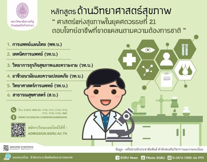 - เว็บไซต์มหาวิทยาลัยฯ WWW.BSRU.AC.TH