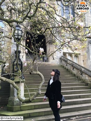 ตอนนั้นคะแนน IELTS ของเราคือ 4 เลยได้เรียน 3 เทอม (9 เดือน) ที่ INTO Glasgow Caledonian University เรียน 5 วัน/สัปดาห์ มีทั้งฟัง-พูด-อ่าน-เขียน โดยจะประเมินเราทุก 3 เดือนค่ะ แต่เริ่มแรกจะได้นั่งคุยตัวต่อตัวกับอาจารย์ก่อน เล่า background ของตัวเองให้เขาฟัง จากนั้นอาจารย์จะแนะนำเรื่องการใช้ภาษาและเริ่มรื้อโครงสร้างเราใหม่หลังจากนั้น