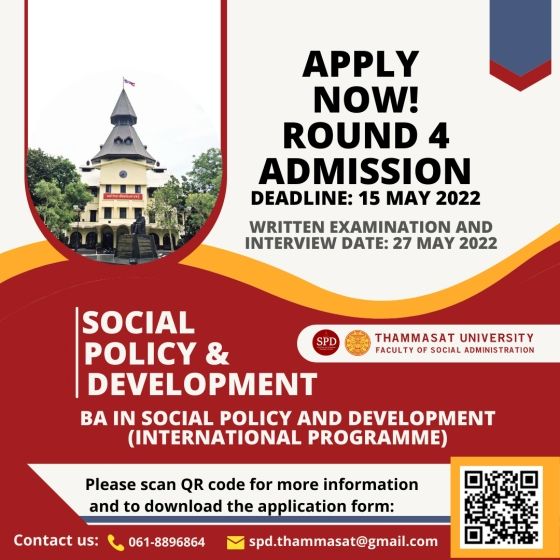 เปิดรับสมัครแล้ว สำหรับรอบ Inter Admission (สอบข้อเขียนและสอบสัมภาษณ์ #TCAS65 ชื่อเต็มๆ ว่า หลักสูตร SPD: Social Policy and Development (International Programme) หรือ สาขาวิชานโยบายสังคมและการพัฒนา (หลักสูตรนานาชาติ) ปริญญาตรี คณะสังคมสงเคราะห์ศาสตร์ มหาวิทยาลัยธรรมศาสตร์ (เรียนที่ มธ. ท่าพระจันทร์)