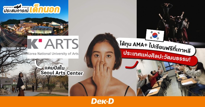 อันยองค่ะชาว Dek-D ~ ใครอยากเรียนต่อสาขาเกี่ยวกับ “นิเทศศาสตร์” หรือ “ศิลปกรรมศาสตร์” ในประเทศที่รัฐบาลส่งเสริมศิลปวัฒนธรรมแบบจริงจังและเป็นระบบ จนกลายเป็นจุดขายและสร้างรายได้เข้าประเทศแบบมหาศาล วันนี้เราจะขอพาไปท่องแดนโสม เสพ Art และประสบการณ์เรียนฉบับ “พี่ฝนพรำ-อริสรา แก้วม่วง” (เจ้าของช่องยูทูบ OneFonPlum l วันฝนพรำ) ศิษย์เก่าศิลปกรรมจุฬาฯ ที่คว้าทุน AMA+ ปี 2016 ไปเรียนต่อ ป.โท เอกการออกแบบท่าเต้น (Choreography) ที่ School of Dance แห่ง K-ARTS ในประเทศเกาหลี สรุปสั้นๆ ได้ว่าคุ้มค่าทั้งบรรยากาศ วิชาเรียน และจำลองให้เห็นการแข่งขันในโลกการทำงานจริงแบบเรียลสุดๆ~