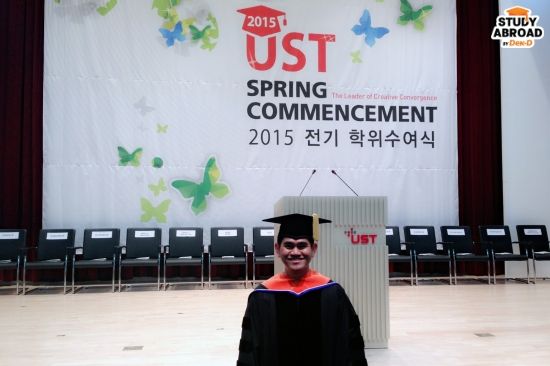 พอจบปี 2553 ก็ทำงานต่อจนประมาณต้นปี 2555 แล้วหัวหน้าก็มาบอกว่า เนี่ย ตอนนี้มีทุนจากเกาหลี ชื่อมหาวิทยาลัย UST มีสาขานิวเคลียร์ที่ตรงสายเราพอดี ตอนนั้นก็ ห้ะ อะไรนะครับ ยังไม่รู้จักแต่เริ่มเตรียมตัวเพราะเค้าอยากให้เราสมัคร เตรียมตัวแบบฉุกละหุกจากตอนต้นปีที่ไม่ได้ภาษาเลย สอบ TOEIC ครั้งแรกได้ 300+ เอง (ต้องไปเช็ก requirement แต่ละปี เพราะล่าสุดยื่น TOEIC ไม่ได้แล้วครับ)